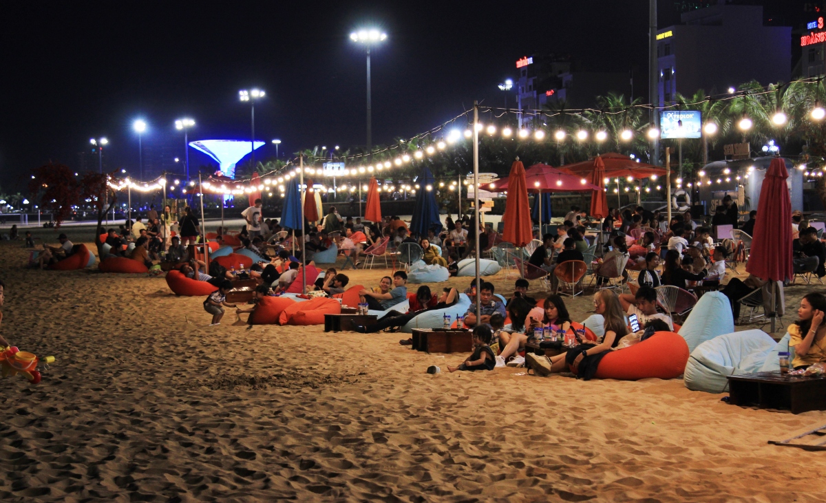 Un café en la playa de Quy Nhon atrae a muchos turistas por la noche. (Foto: VOV) |