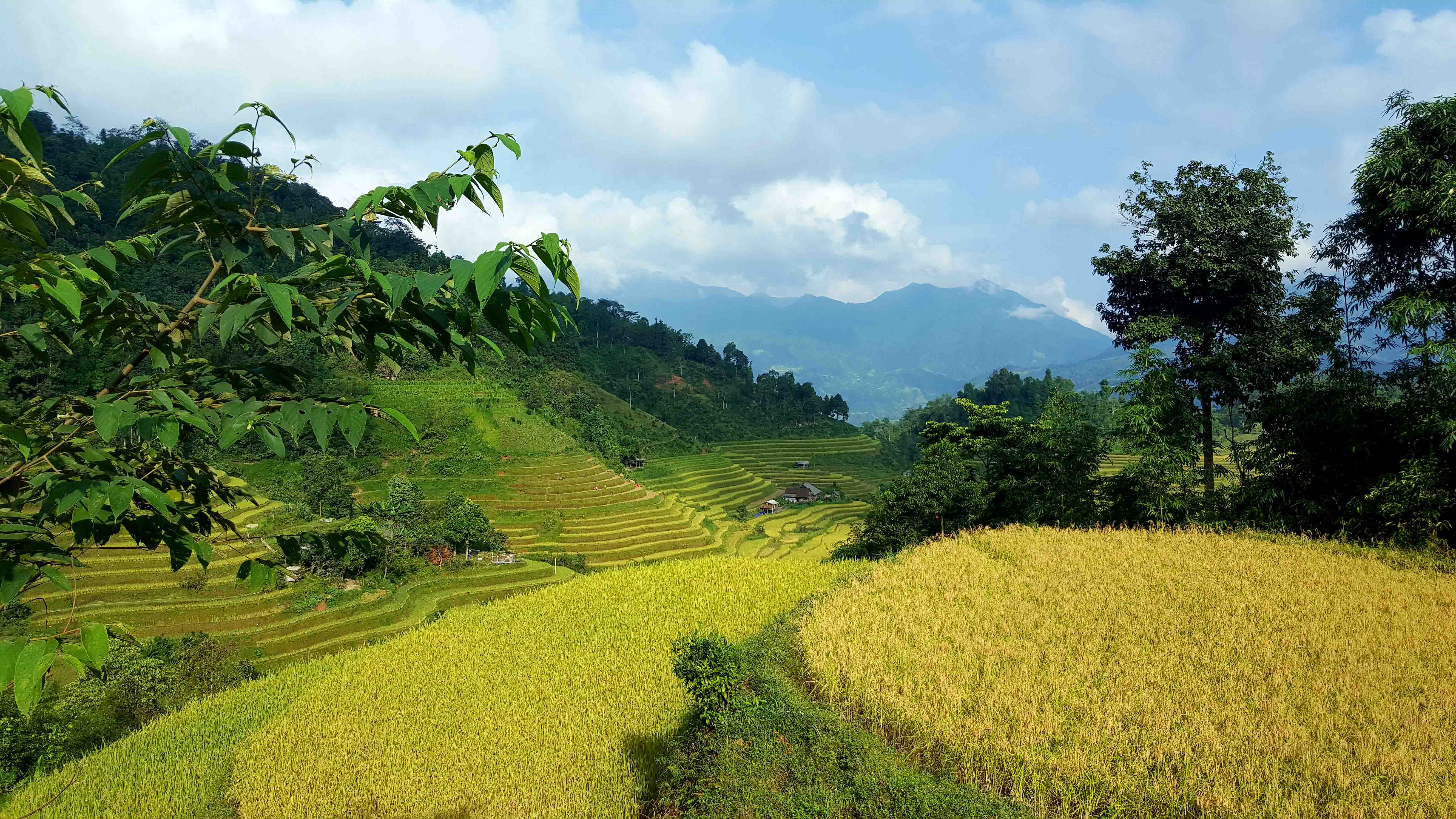El sistema de riego es también muy científico, aplicando el principio de vasos interconectados. El agua del arroyo desemboca en el primer campo de cultivo en terrazas con una pendiente muy pequeña para que cuando fluya a través del arrozal no cause erosión ni pérdida de fertilidad del suelo. Cuando el agua está lo suficientemente alta, pasa a través de un aliviadero para fluir hacia las parcelas de abajo. Para campos pequeños con una superficie de uno o dos metros cuadrados se usan tuberías de bambú como vasos interconectados.