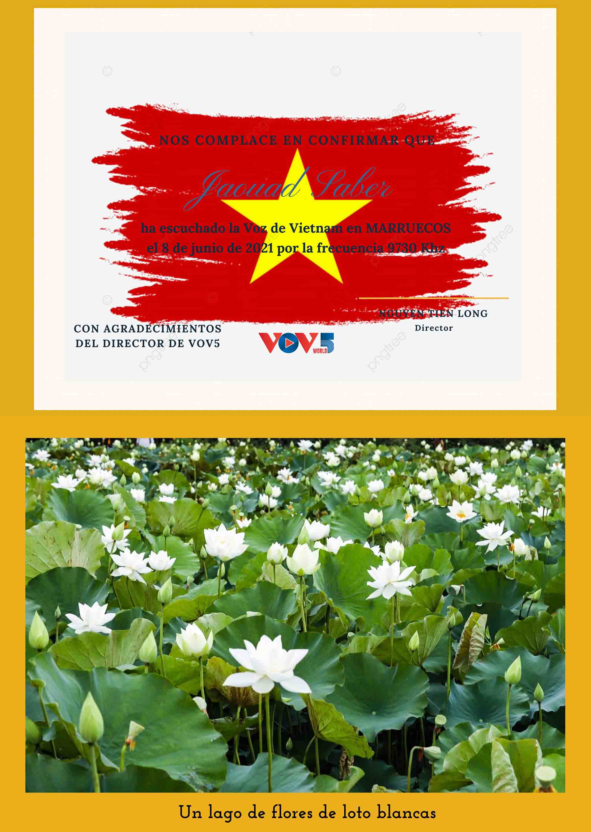 La tarjeta electrónica QSL de la Voz de Vietnam compartida por el oyente marroquí, Jaouad Saber en nuestra página de fans Amigos VovDx. |