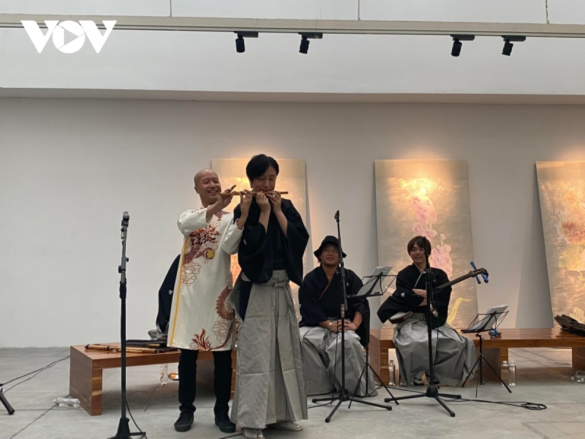 El intercambio entre la banda Suc Song Moi y Ryoma Quartet. (Foto: VOV)