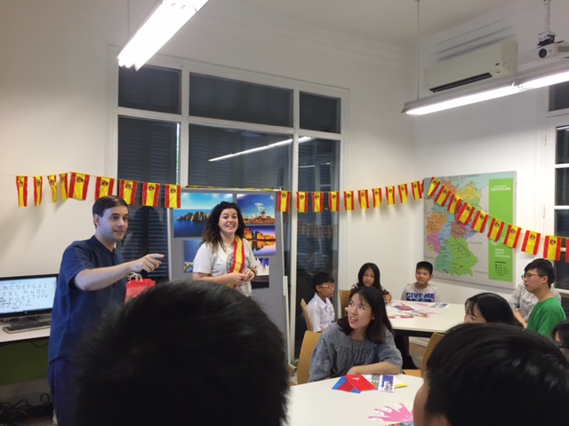 La clase de prueba de castellano atrajo a muchos, entre ellos niños, jóvenes y también personas de mediana edad. Los participantes aprendieron a pronunciar algunas palabras siguiendo las divertidas instrucciones de dos ingeniosos maestros españoles. De ser personas desconocidas, se hacían amistad y descubrían juntos esta lengua a través de pegajosas canciones pop latino.