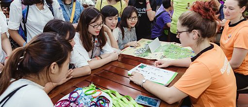 El recinto del Instituto Goethe de Hanói estaba cada vez más animado a medida que se acercaba la hora de la apertura. Ya desde la entrada los visitantes percibían el ambiente ameno del evento. A cada uno se le ofrecieron folletos con indicaciones sobre el programa de la jornada y los juegos que se organizaban en relación con la lengua y la cultura de varios países europeos. Los premios para los ganadores eran estipendios para participar en cursos de idiomas extranjeros, camisetas o gorras. Se veían en el patio del instituto varios grupos de jóvenes reunidos para jugar juntos o acordar en qué actividades participarían. Vu Phuong Thao, de 20 años, iba con dos compañeros. La joven y sus amigos se mostraron entusiasmados con la jornada. Thao dijo: “Participo en este evento porque quiero conocer más sobre las lenguas y las culturas europeas. Estudio inglés y alemán, ahora quiero aprender francés y español. Creo que cuando sabemos varios idiomas extranjeros podemos comunicarnos con los nativos con mayor facilidad y tenemos más confianza en nosotros mismos. Hoy aproveché para participar en cursos introductorios de francés y español”.