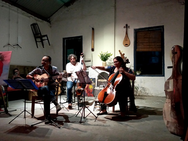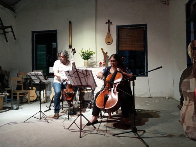 Hieu dijo: “Para mí es una experiencia interesante, porque no siempre se puede disfrutar de una pareja tocando el violoncelo y el contrabajo al estilo latinoamericano y del jazz estándar. Esta es una novedad musical en Hanói. David toca el contrabajo muy bien, así que le propuse tocar la guitarra con él”.