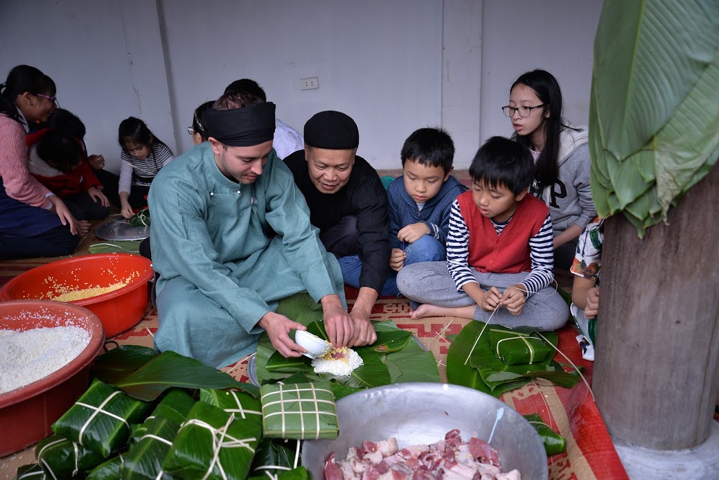 Llegado a Vietnam a principios de octubre pasado para cursar en la Universidad de Medicina de Hanói, Erik, un estadounidense de 25 años de edad, está entusiasmado por descubrir la cultura vietnamita, muy distinta con la de su país de origen. Por esta razón, cuando fue invitado por sus amigos para participar en el programa de experimentar el Tet organizado por el grupo Dinh Lang Viet (Casas comunales de Vietnam) en la aldea antigua de Le Mat, en los suburbios de Hanói, el joven aceptó sin vacilación. En el evento, Erik testimonió el ritual del levantamiento del árbol del Año Nuevo Lunar (cay neu), disfrutó de diversas melodías folclóricas como “xoan”, manifestación originaria de la provincia septentrional de Phu Tho; las coplas alternativas “quan ho” de Bac Ninh y los cantos ceremoniales “ca tru” y de los ciegos vagabundos “xam”. Asimismo, el chico experimentó varias técnicas de las pinturas populares de las aldeas de Dong Ho y Kim Hoang. Erik compartió: “Cuando mis amigos me preguntaron si quería vestirme con la túnica tradicional de Vietnam, “ao dai”, respondí: “Sí, claro”. Es muy bonita. Participé en juegos populares y también aprendí a elaborar el “banh chung”, pastel cuadrado de arroz glutinoso típico del Tet. Es mucho más difícil de lo que imaginaba pero fue una experiencia genial.”