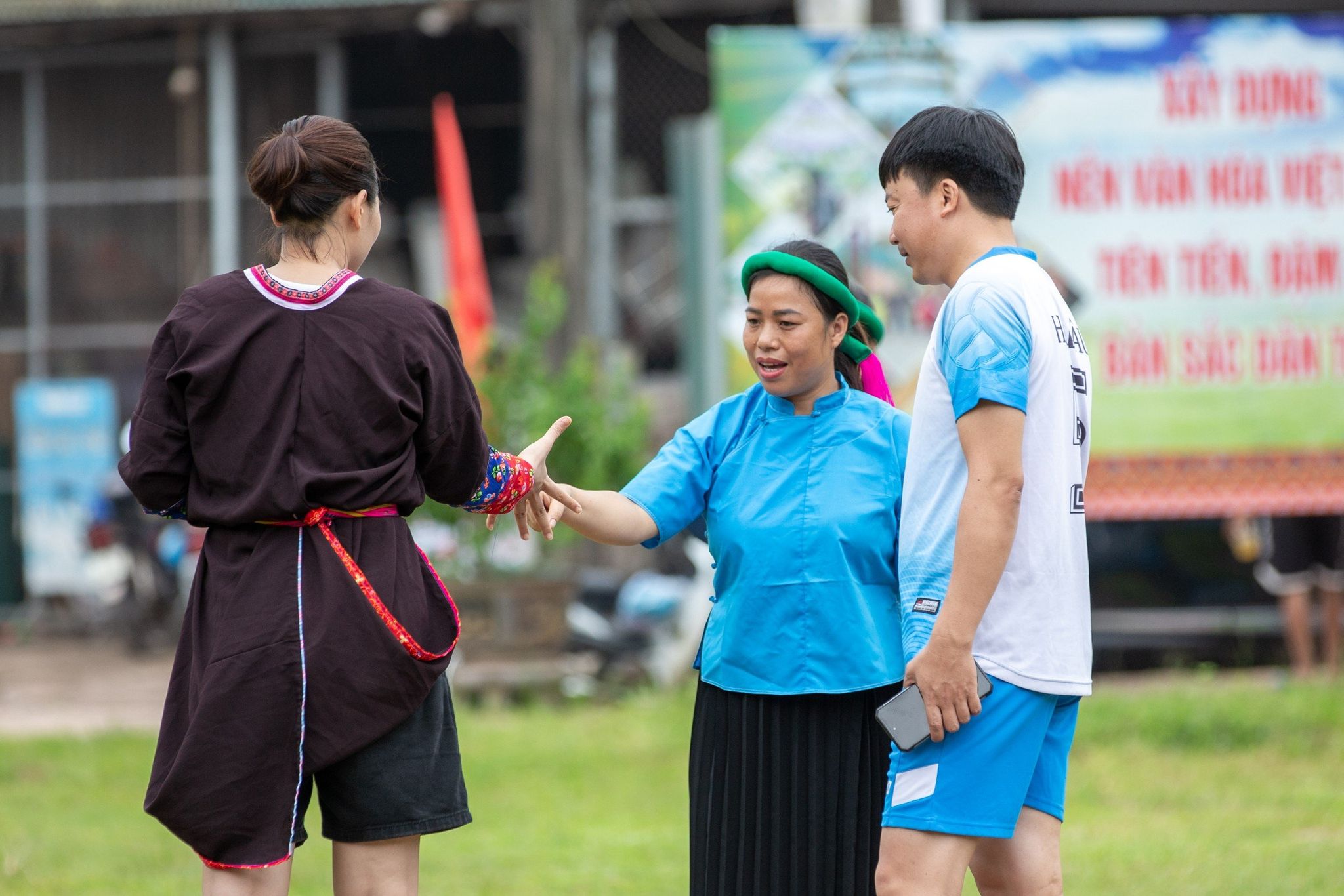Al respecto, Ha Thi Hoa, miembro del equipo de fútbol femenino, dijo: “Llevar el traje de la etnia San Chi es un poco engorroso. Cuando quieres disparar la pelota, es muy difícil y requiere que la jugadora sea rápida y hábil. Fallé 2 patadas”.