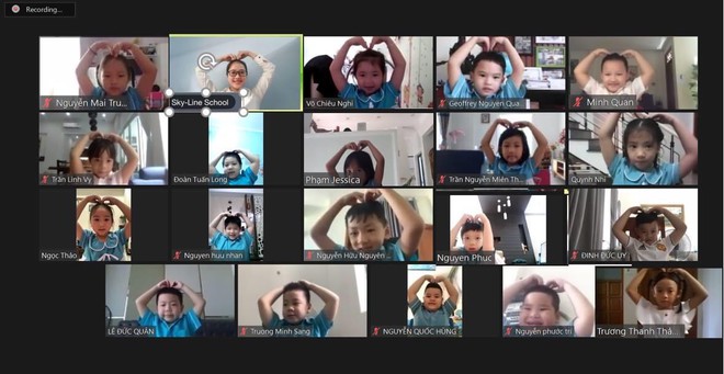 Alumnos de una clase en Da Nang se conectan a través del internet para dar la bienvenida al nuevo curso escolar (Foto: thanhnien.vn) |