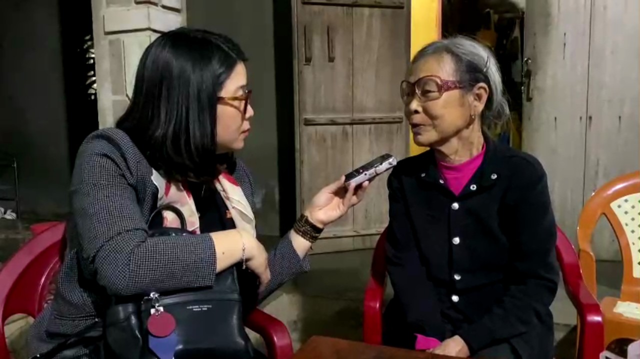 La periodista Thu Hoa (i) entrevista a una familiar del mártir Cao Van Tuat. |