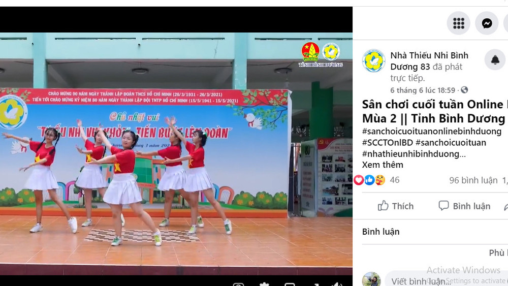 Con el lema "Prevenir la epidemia y dotar a la vez con un terreno de juego para los niños”, a principios de junio (Mes de Acción para los Niños), el Palacio de Pioneros de Binh Duong creó programas adaptados a través de la página de seguidores en Facebook, y el Consejo de Apoyo para los Pioneros junto al Palacio de Pioneros de esta provincia llevaron a cabo una serie de programas de transmisión en directo para ayudar a los niños a tener más conocimientos sobre prevención de accidentes, lesiones diversas y abuso infantil. Además, el “Espacio recreativo de fin de semana en línea” con muchas categorías publicadas en la página de seguidores también atrae a un gran número de visitantes, especialmente en los espacios “Boletín de brotes de bambú” (se refiere a los infantes) y “Superación de desafíos con premios”.