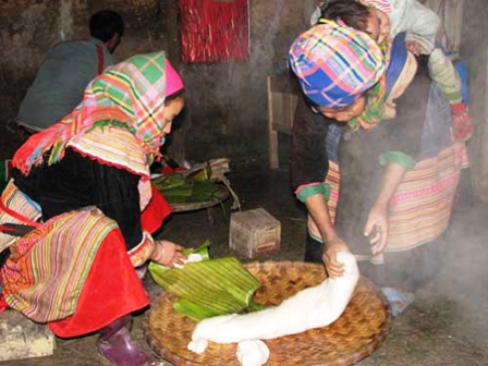 Las tortas de los grupos étnicos en Vietnam se confeccionan con ingredientes producidos por ellos mismos, para expresar así respeto a sus antepasados. Su elaboración y consumo se han transmitido de generación en generación como un rasgo cultural típico de esas comunidades.