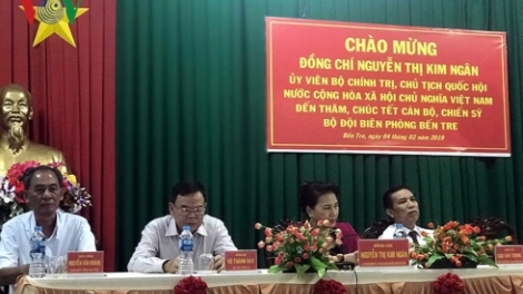 (VOVWORLD) - La presidenta del Parlamento vietnamita, Nguyen Thi Kim Ngan se reunió este 4 de febrero con dirigentes de las fuerzas de seguridad pública y de guardia fronteriza de la provincia sureña de Ben Tre en la fiesta de Nochevieja del año lunar 2018.