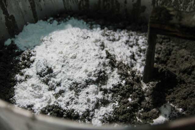 El polvo de hojas de ramio se mezcla con la harina de arroz para hacer la corteza del "banh gai" |