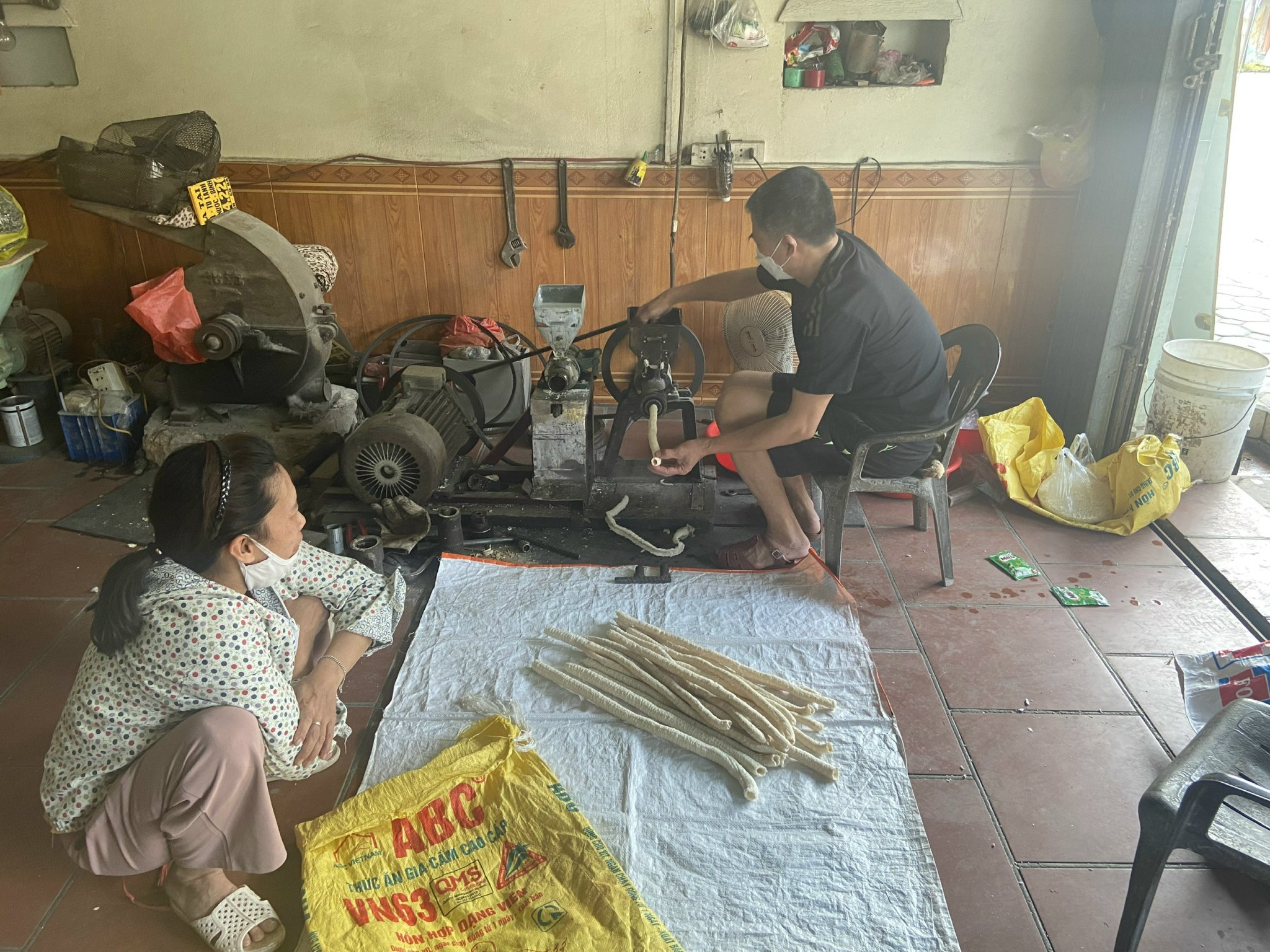 Tran Thi Hien contó: “Mi familia lleva 30 años haciendo este trabajo, desde los años 89 y 90. Antes, cuando todavía faltaba la electricidad, teníamos que hacerlo con una máquina cuya energía era generada con manivela. En aquel momento, cada día cargábamos la máquina en un remolque y la arrastrabamos por todas partes. Luego, a partir del año 1991, cuando llegó la electricidad, mi esposo y yo pasamos a usar esta actual máquina enchufable y abrimos una tienda como la de ahora”.
