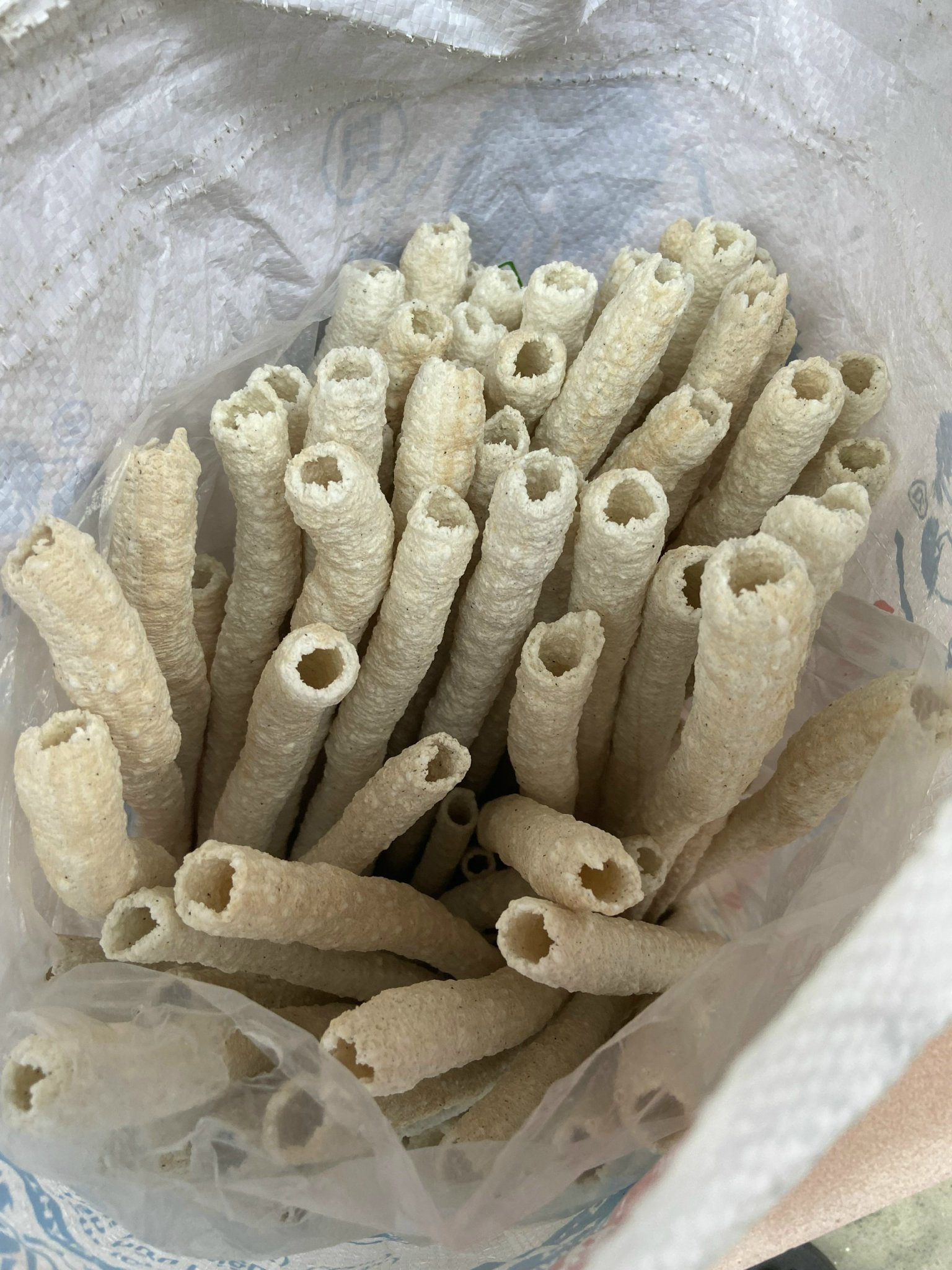 Tran Thi Hien está poniendo los "bong gay" en un saco. |