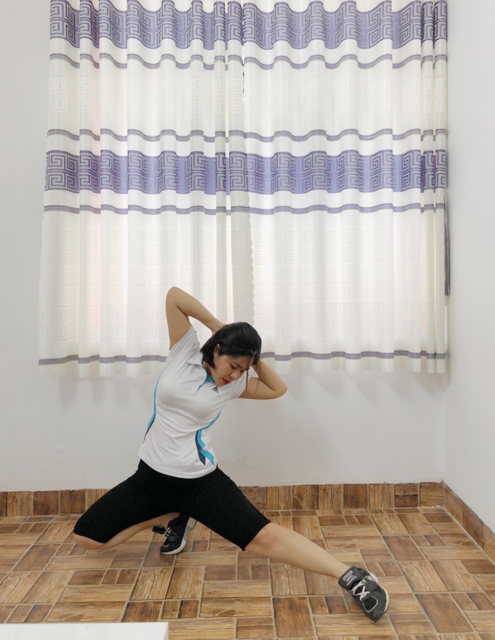 Ha Phuong ejerce movimientos sencillos de gimnasio en su casa para mantenerse en forma. (Cortesía de Ha Phuong) |
