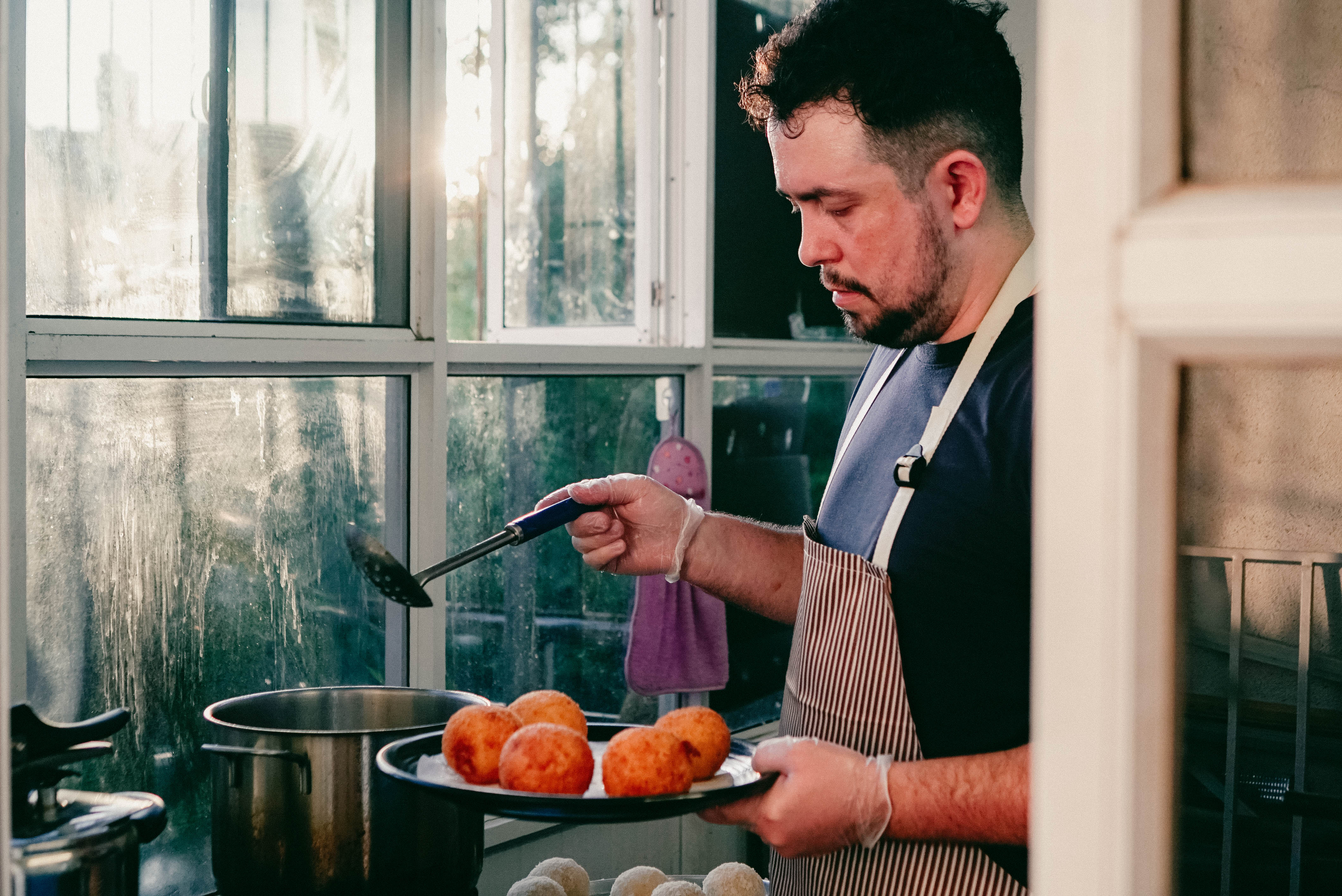 Yohan, uno de dos dueños de El Gusto Cubano, está cocinando. |