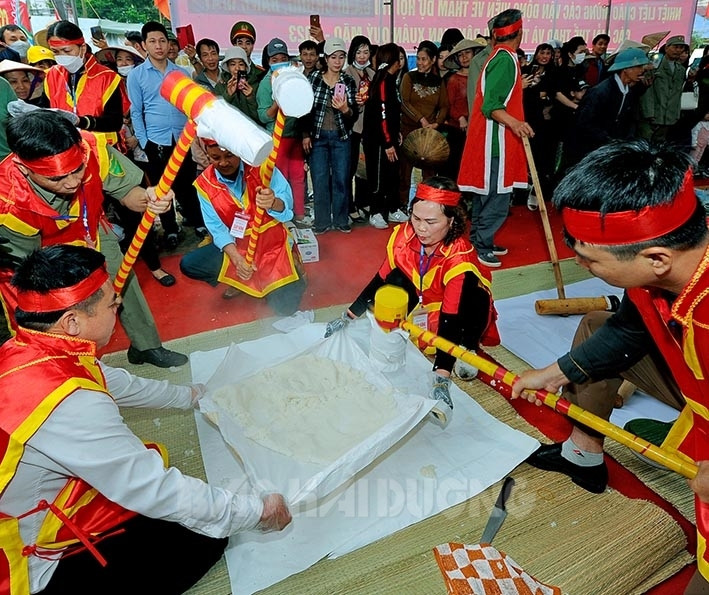 La competencia de hacer "banh day". (Foto: baohaiduong.vn) |