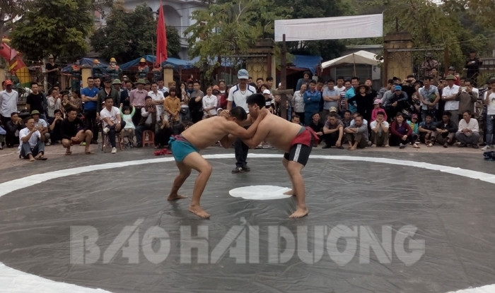 La lucha tradicional en el marco del Festival del templo Cao. (Foto: baohaiduong.vn) |