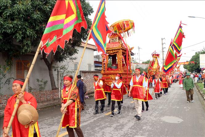 Unas 150 personas participaron en este ritual. Al frente de la procesión estaba el equipo de danza del león. Le seguían varias personas encargadas de empujar y tocar un gran tambor. Detrás, se situaban ocho palanquines pintados de bermellón y dorado, en los cuales se ponían tablillas memoriales, gorros de mandarín y cuencos de incienso de los santos de la familia Vuong. Cada palanquín era llevado por cuatro personas, junto con otros dos que llevaban paraguas y golpeaban gongs.