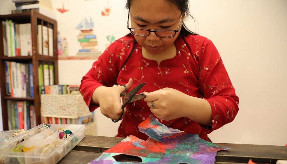 De este pedazo de cartón, Nhung creará sus aretes |