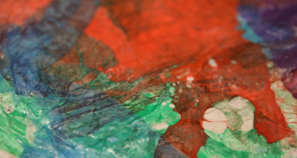 El material utilizado es un cartón que se prensa de cientos de bolsas plásticos multicolores para darle un color especial. |