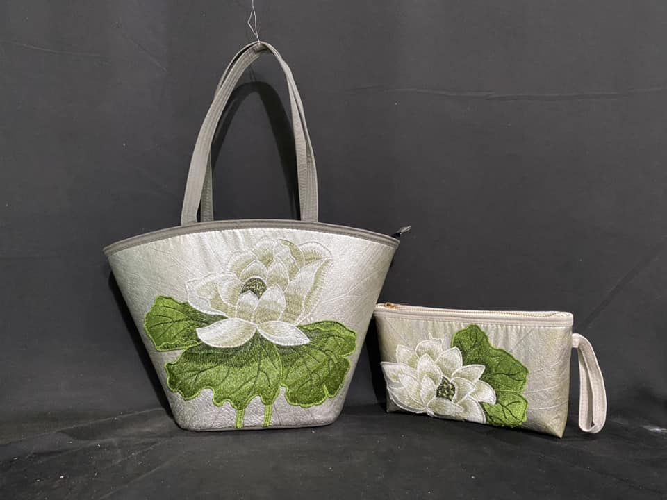 Bolsos y carteras hechos de hojas de loto. (Foto: Sen Thao)