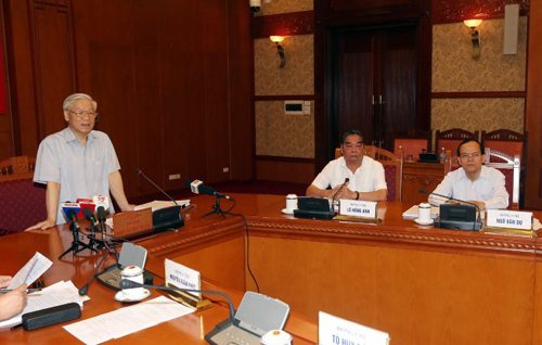 Sobre la consolidación partidista, Nguyen Phu Trong apreció una definición más clara de la necesidad y la orientación para renovar la organización y las actividades del sistema político integral conforme a la Constitución de 2013. El máximo líder político de Vietnam aseguró: “Necesitamos insistir en el acatamiento de la resolución del cuarto pleno del Comité Central del Partido, onceno mandato sobre el reforzamiento partidista, impulsando la lucha contra la corrupción, el despilfarro y el debilitamiento moral, además de promover la renovación del liderazgo. Hay que continuar perfeccionando y cumpliendo con seriedad los mecanismos de control de la autoridad para prevenir el abuso de poder y la violación de las normativas”.
