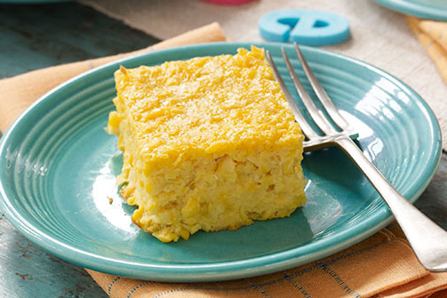 B: Corn cake is the right answer. But the version I want to introduce to you is corn cake with custard powder, which is an old time Malaysian favorite. It is served as a light dessert or a tea time treat. This simple dessert is prepared in minutes with only five ingredients, most of which are pantry staples.
