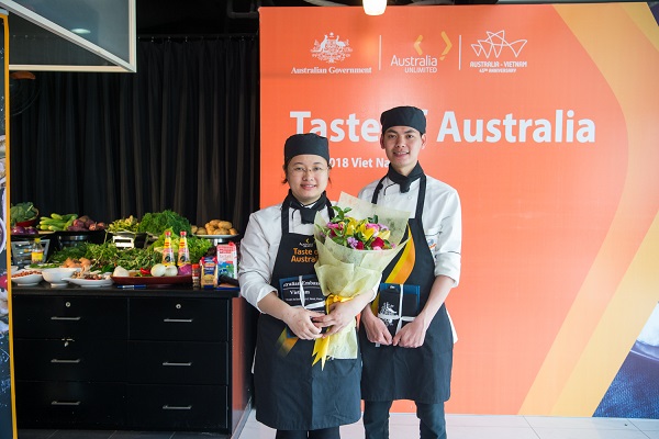 Nguyen Thi Huong Tra and Do Quoc Binh are the winners in the preliminary round of this year’s Taste of Australia Culinary Competition in Hanoi (Photo: Australian Embassy Vietnam) |