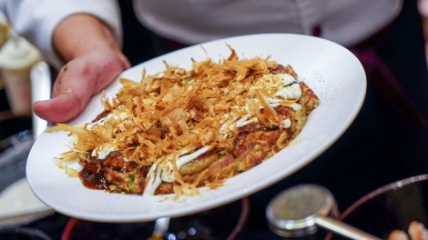 (VOVWORLD) - In every bite of Japanese Okonomiyaki you will savor its chewy, flavorful beef. The crisp texture of cabbage and a delicately sour mayonnaise sauce balance out the flavor of the dish.