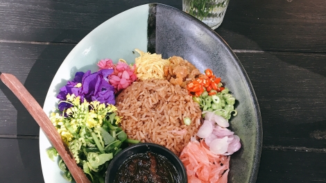 (VOVWORLD) - Shrimp paste fried rice is a Thai ancient food. The rice is mixed with shrimp paste and dressed with fried beaten egg, pomelo, fried dried shrimp, sliced purple onion, and hot chili peppers. this traditional dish is really simple to make at home. The explosion of color, texture, and flavor is absolutely stunning and is sure to please your family and friends.