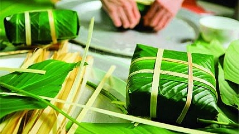(VOVworld) - Chung Cake is a staple of the Vietnamese Lunar New Year. The cake is made from very simple and basic ingredients such as glutinous rice, fatty pork, and green beans.The cake is served hot or cold with pickled vegetable, fish sauce, or soybean jam. It can even be fried to create a delicious chewy or crisp dish. The rich, fatty pork, the fragrant Dong leaves, and the glutinous rice blend into an unforgettable flavor.