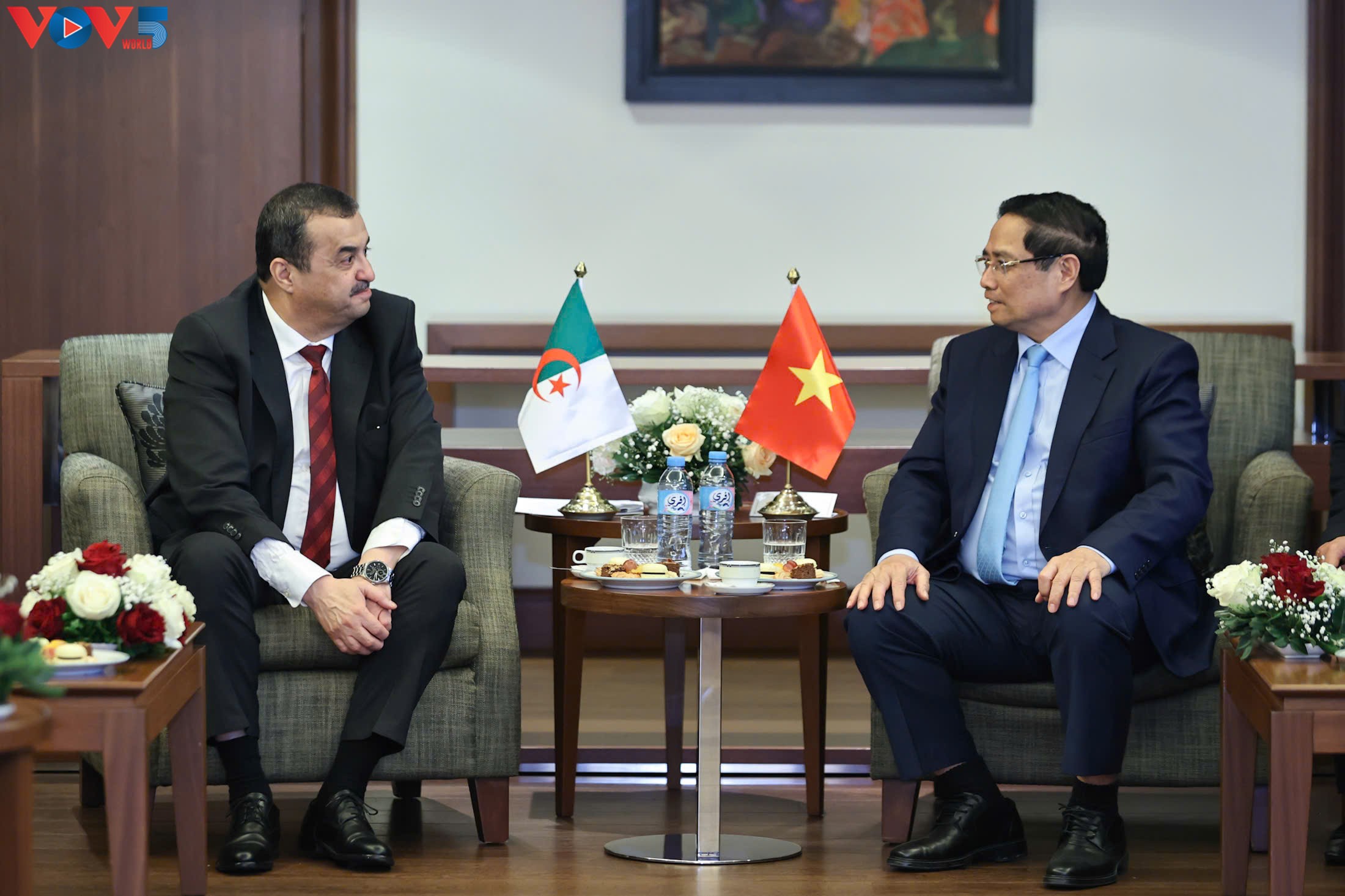 Il a d’abord rencontré Abdelkrim Benmebarek, secrétaire général du Front de libération nationale (FLN). Les deux dirigeants ont assisté à la signature d’un accord de coopération entre le Parti communiste vietnamien et le FLN. Le Premier ministre a appelé à intensifier les échanges d’expériences et à élaborer rapidement un programme d’action pour concrétiser le partenariat stratégique récemment annoncé.