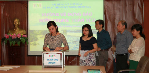 (VOVworld) - VOV5, la station des émissions internationales de la Voix du Vietnam a organisé mercredi matin une collecte de fonds en faveur des victimes des crues du Centre. 20 millions de dongs ont été collectés à cette occasion. Selon le directeur de VOV5, Nguyen Tien Long, cette collecte avait pour but de répondre à l’appel de fonds «Solidarité avec le Centre», déclenché le 18 octobre par la Voix du Vietnam.