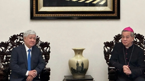 (VOVWORLD) - Ces derniers jours, les dirigeants du Parti et de l’État ont multiplié les visites pour adresser leurs meilleurs vœux de Noël à la communauté catholique à travers le pays. Lors des rencontres avec les dignitaires et les fidèles, ils ont salué les contributions importantes de la communauté catholique au développement national, tout en l’encourageant à continuer de valoriser la grande unité nationale et à s’engager activement dans la construction d’un pays prospère.