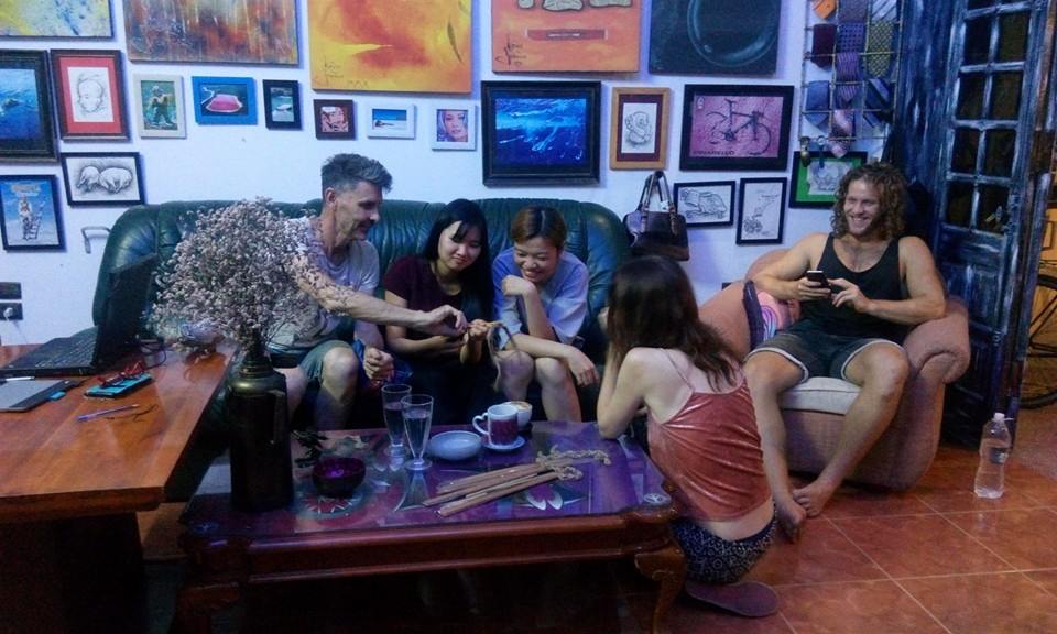 J’ai rendez-vous au Vélo Love Cafe Bar, qui est niché dans une petite ruelle attenante à la rue Ve Hoa, dans l’arrondissement de Tây Hô. Je suis attendue par tout un groupe de jeunes femmes, qui ont en partage l’amour du macramé.