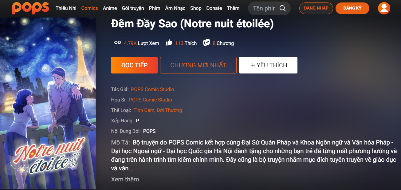 À l'heure actuelle, les 8 premiers chapitres du premier épisode en vietnamien de "Notre nuit étoilée" ont accumulé près de 5000 vues", s'est réjouie Nguyên Duong Thai Ngân, responsable de l'équipe webtoon de POPS Comic.