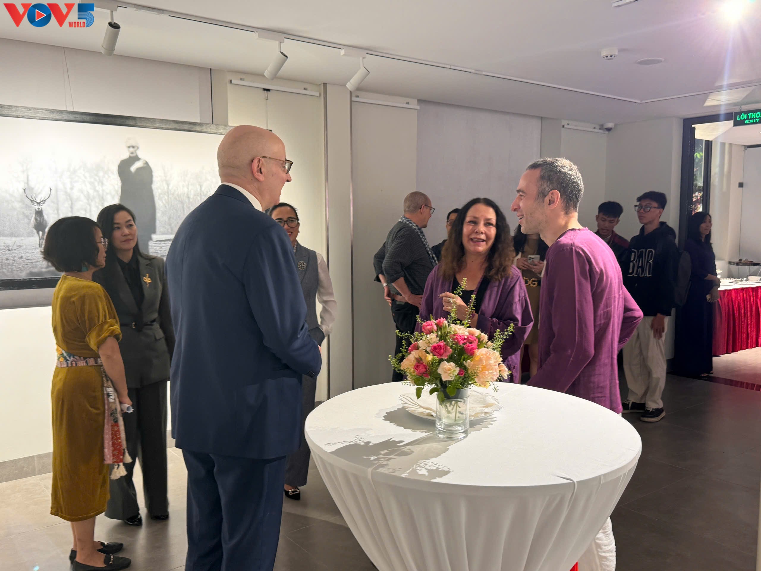 Jean-François Spricigo au vernissage de son expo “Journal d’un effaré”, tenue dans le cadre du Photo Hanoi'25. Photo: Thuy Linh/VOV5 |
