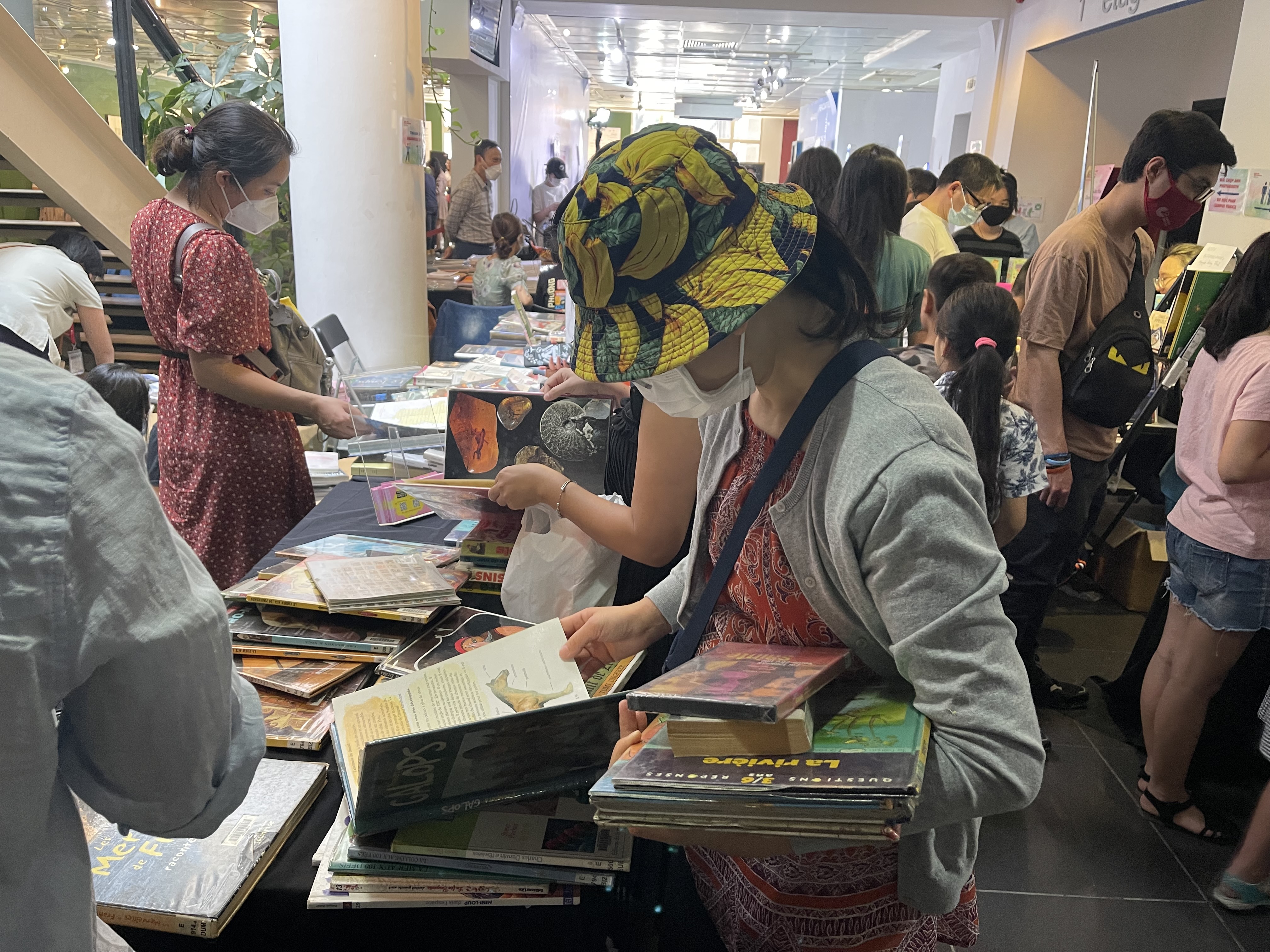 Un coin dédié à la braderie de livres, inscrit dans le cadre du Marché français. Photo: Thùy Linh