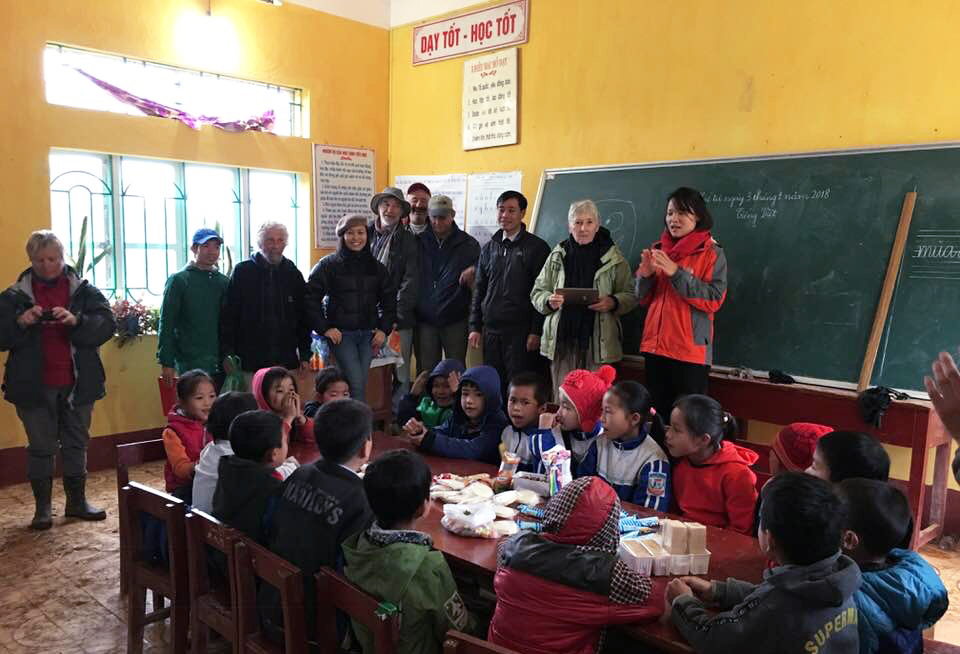 J’aime beaucoup les gens de l’Asie en général, et du Vietnam en particulier, parce que ce sont des gens simples, sympathiques, et qui ont le goût de rire malgré les difficultés dans lesquelles ils sont. Je suis venu au Vietnam pour la première fois il y a 15 ou 16 ans et ça a été le coup de foudre. Je suis revenu ici quelquefois et j’ai décidé de travailler, depuis presque 4 ans maintenant, avec Diep To, qui est mon ancienne guide touristique et maintenant mon amie de longue date. En ce qui concerne le travail qu’on fait avec elle, Diep To est répondant de nos projets au Vietnam. On trouve les sous, on organise des équipes de bénévoles et on vient ici réaliser des projets dans la commune de Pù Bin (district de Mai Chau, province de Hoa Binh) en fonction des recherches que Diep To a fait. Alors la première année, on a construit des toilettes pour une petite école du village de Nà Lụt. La deuxième année, des toilettes pour une école plus importante du village de Nà Phặt qui reçoit entre 150-200 enfants. Entre les années 2017 et 2018, on revient pour construire des toilettes aussi pour deux autres petits villages. Présentement, on travaille à Noong Luông et le deuxième groupe qui va venir nous rejoindre en janvier 2018 va continuer le même projet dans le hameau de Bin.