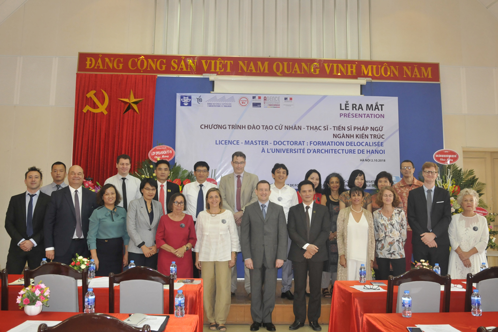 Depuis 17 ans, nous avons une formation de niveau post-Master qui s’appelle DPEA «Projet urbain, Patrimoine et Développement durable». C’est grâce à ce DPEA que depuis 10 ans, nous arrivons à monter un Master «Architecture-Paysage» en coopération avec quatre ENSA: Normandie, Bordeaux, Toulouse et de Paris-Belleville. Et depuis trois ans, nous arrivons à monter une formation doctorale en co-tutelle intitulée «Architecture, Ville, Territoire et Paysage» avec ce même consortium. Depuis l’année dernière, cette filière francophone est soutenue par le ministère français de la Culture sur l’ensemble de ses formations. L’idée, c’est d’aller vers la mise en place d’un système LMD (License-Master-Doctorat) délocalisé au sein de l’Université d’Architecture de Hanoi. Donc pour la rentrée de cette année, c’est-à-dire septembre 2018, nous avons la première promotion de cette licence «Diplôme d’études en architecture» (DEEA) délocalisée..