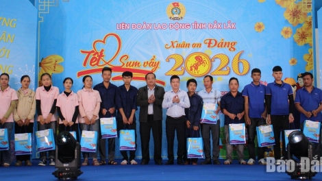 (VOVWORLD) - Ce mercredi matin, la Fédération du travail de la province de Dak Lak a organisé l’édition 2026 de deux programmes Têt de la solidarité et Printemps de reconnaissance envers le Parti, destinés à apporter un soutien aux syndiqués et travailleurs en situation difficile dans la partie occidentale de la province.