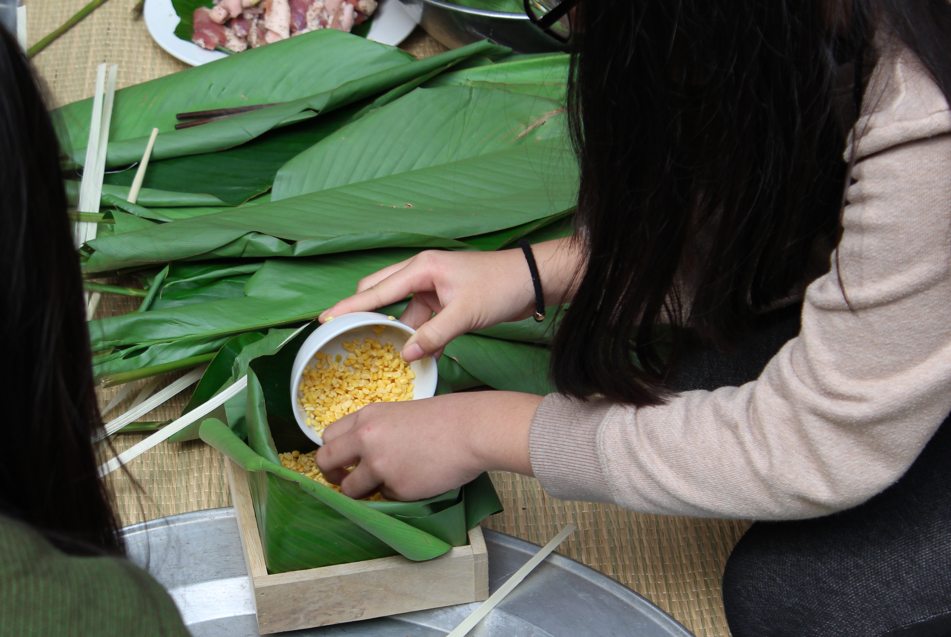 «C’est vraiment difficile de confectionner un bánh chưng, nous dit Huyen Trang, une élève de la classe 6A4. Mais cet atelier est très intéressant, en tout cas… Je suis très contente de pouvoir apprendre à faire le bánh chưng en suivant une recette traditionnelle et de savoir quelle est sa signification».