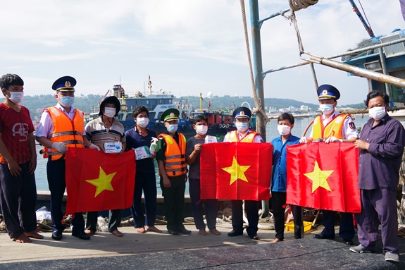 Dalam program ini, pasukan Polisi Laut dan para peserta memberikan 100 bendera nasional, 1.500 masker, 100 botol disinfektan dan sebagainya kepada para nelayan yang sedang berlabuh di sana. Bingkisan-bingkisan ini punya makna praktis, menunjukkan kepercayaan dan perasaan dari daratan kepada warga di pulau terdepan tanah air. Hal tersebut lebih mempererat perasaan dan keterkaitan antara tentara dan warga untuk bersinergi dengan nelayan di pulau yang jauh, membantu kaum nelayan meningkatkan tanggung-jawab, kesadaran dalam menaati hukum, tenang mengarungi laut, mengembangkan ekonomi kelautan, membela kedaulatan dan keamanan laut dan pulau tanah air.