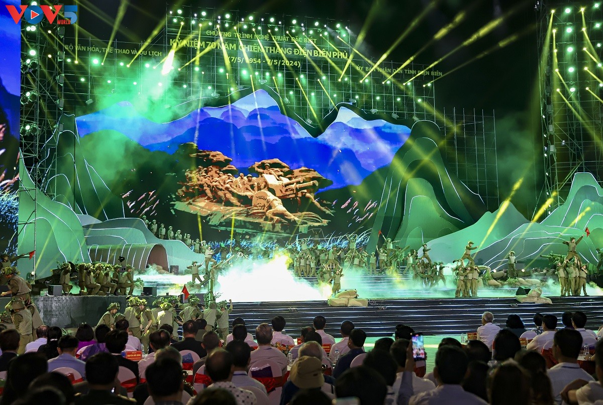 Program kesenian tersebut menggunakan teknologi modern untuk melukiskan kembali panorama tentang Operasi Dien Bien Phu, membawa suasana yang suci di medan perang masa lalu.