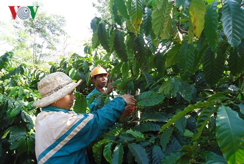 Peserta program kerjasama negara-swasta mendapat bantuan teknis tentang penanaman kopi yang efektif (Foto: VOV)