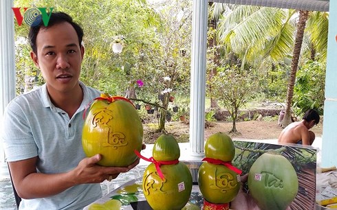 Untuk melaksanakan dengan baik program tersebut, Provinsi Ben Tre menggerakkan partisipasi dari seluruh sistem pemerintahan dari provinsi sampai ke basis; di antaranya berfokus pada pekerjaan sosialisasi, menyelenggarakan lokakarya dan kursus pelatihan dan menggelarkan proyek-proyek start-up. Provinsi Ben Tre telah membentuk 774 proyek untuk memberikan bantuan modal start-up dengan total biaya sebesar lebih dari 800 miliar VND. Melalui program “Bangkit serempak, melakukan usaha start-up dan mengembangkan badan usaha”, sudah ada banyak pola, badan usaha produksi dan bisnis baru yang potensial. Yang tipikal ialah pola “start-up” yang dilakukan saudara Huynh Thanh Tam, seorang pemuda di Kotamadya Chau Thanh, Kabupaten Chau Thanh. Pada tahun 2016, dia mendapat bantuan modal sebesar 50 juta VND untuk melaksanakan proyek start-up “Kelapa Phu Quy – Ben Tre”. Melalui penelitian dan penerapan teknik-teknik dalam produksi, dia telah berhasil dengan proyek ini. Sekarang, saudara Huynh Thanh Tam telah membentuk badan usaha tentang buah-buahan yang bisa dibentuk dan bisa diukir dengan tulisan, menciptakan bermacam jenis buah-buahan yang bernilai tinggi. Saudara Huynh Thanh Tam mengatakan:
