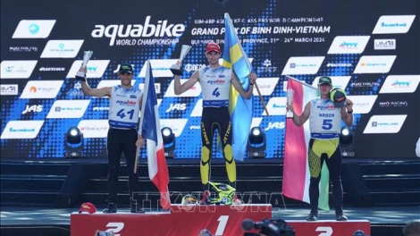 (VOVWORLD) - Setelah berlangsung secara bergelora selama tiga hari, Kejuaraan Balap Sepeda Motor Air UIM-ABP Aquabike World Championship telah berakhir pada Minggu (24 Maret), di Kota Quy Nhon, Provinsi Binh Dinh dengan hasil-hasil yang mengesankan, bersamaan itu meninggalkan rekam jejak yang tak terlupakan dalam hati kalangan penggemar.