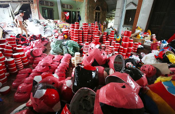 Warga desa Hao tidak hanya membuat genderang mainan tapi juga membuat beduk untuk digunakan di sekolahan atau dalam pesta-pesta. Suara genderang Desa Hao telah bergema ke seluruh penjuru Tanah Air dari Utara sampai Selatan. Vu Huy Dong, seorang lansia di Desa Hao menceritakan: “Dulu, Desa Hao membuat genderang, si Teu, topeng, lampu Festival Medio Musim Rontok, belakangan ini membuat banyak barang mainan lainnya. Khususnya topeng untuk anak-anak juga ada 20 jenis, pada pokoknya topeng berbentuk 12 binatang shio yang dikombinasikan dengan tokoh-tokoh dalam dongeng. Pada setiap Festival Medio Musim Rontok, keluarga saya membuat kira-kira 20000 buah mainan dari bermacam-macam jenis.”