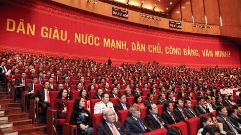 (VOVWORLD) - Dalam rangka Kongres Nasional XIII Partai Komunis Vietnam (PKV), pada Rabu (27 Januari), para utusan bekerja di auditorium untuk membahas dokumen-dokumen kongres.