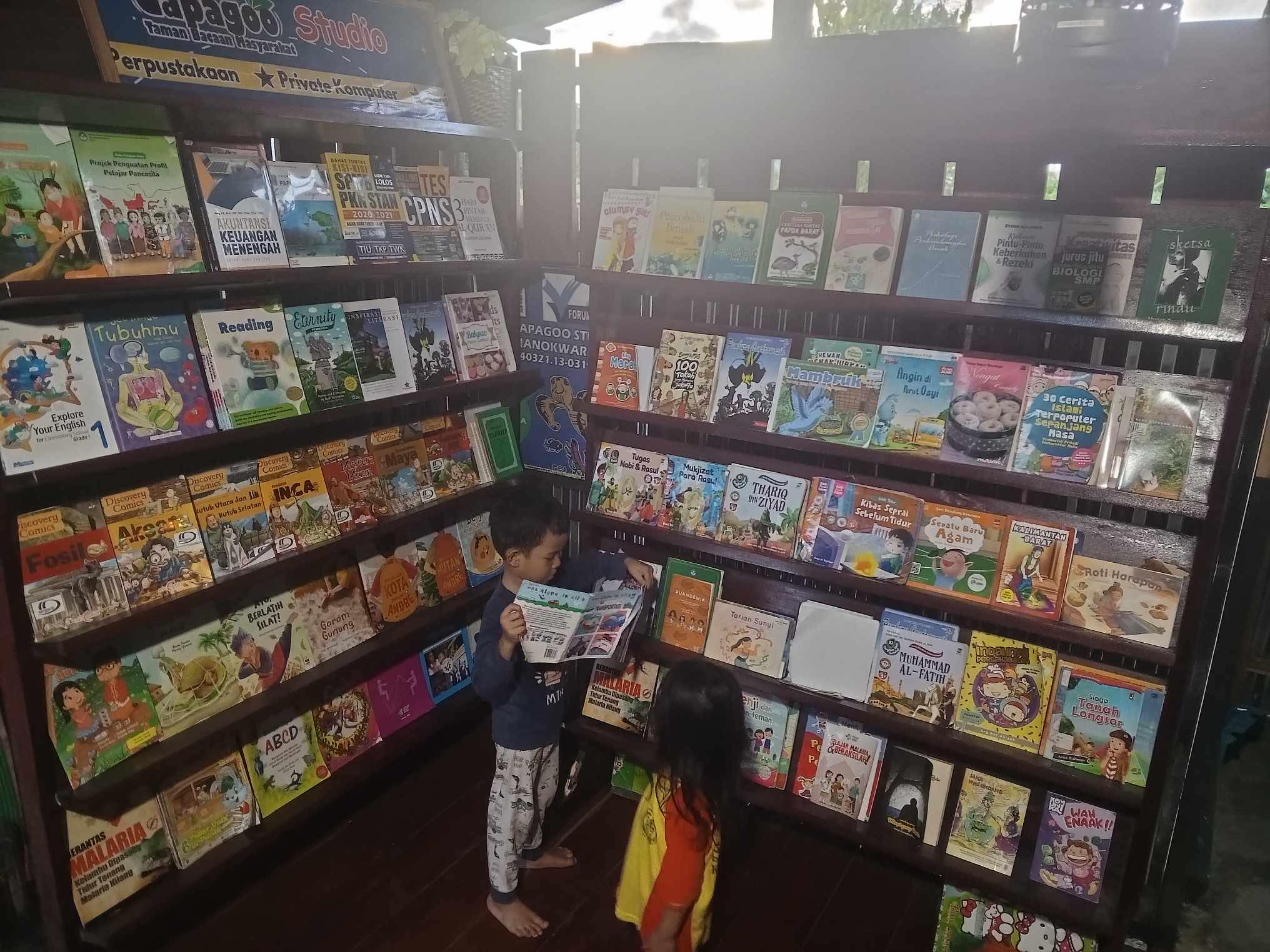 Anak-anak membaca buku di Taman Baca Gapagoo Manokwari |